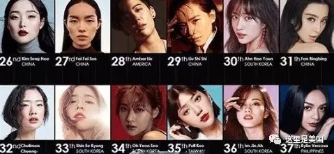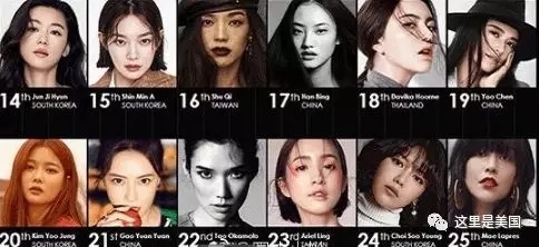 除了前十名,我们再看看还有哪些中国女星也在榜单之列。