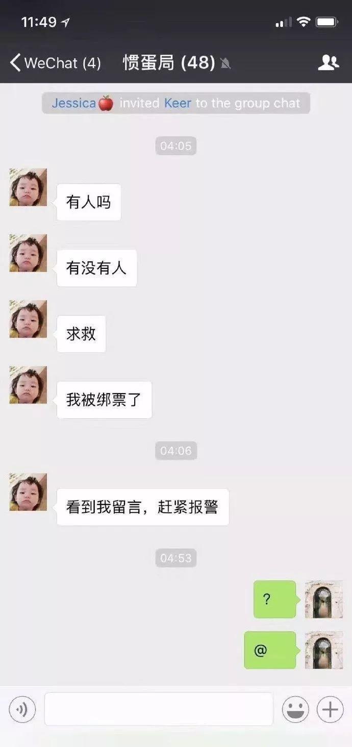 “荣露琦”在当地时间2月25日通过微信群发出求救信息,说自己被绑架了,让大家帮ta报警,随后失联。