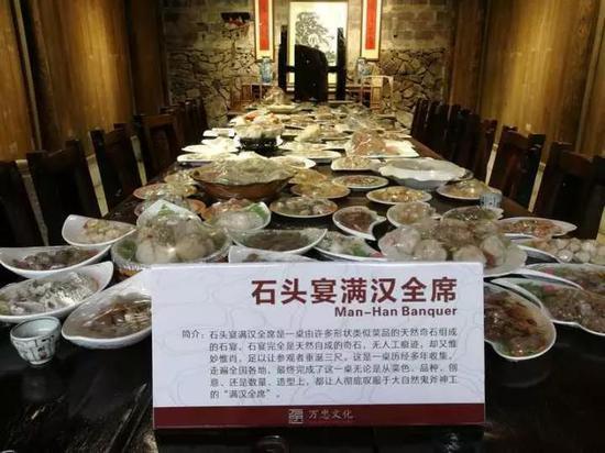 王万忠的这桌“菜”,动用了上千块奇石,每一盘“菜”的价格可比平常在饭店里吃的要贵多了。
