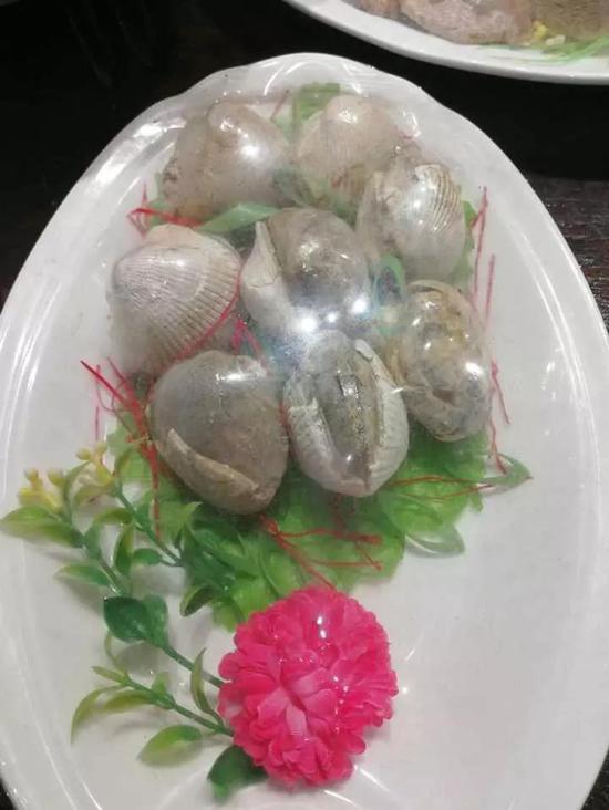 “最便宜的一盘价值都要几百,有很多‘菜’,一盘奇石的市场价格达到几千近万元。”王万忠表示,像那一盘‘花蛤’,里面的每一个都是真的花蛤化石拼起来的,尽管在亿万年前它们还是真的海洋生物,不过现在它们都变成石头了。这种化石“菜”的市场价格就非常高了。