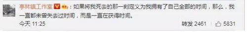 “但对人而言,沙粒不断坠落的过程就象征着光阴的流逝,但也不能单单认为这是自己的失去。如果将我出生的那一刻定义为拥有全部时间的话,时光确实从我手中流逝了;但如果将我死去的那一刻定义为我拥有了自己全部时间的话,那么,我一直都未曾失去过时间,而是一直在获取时间。”