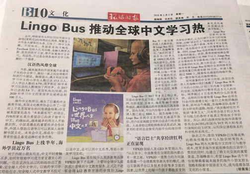 随着海外汉语热持续升温,学习中文俨然成为了新趋势之一。外国人对于中文的热情,也引发了国内媒体关注。近日,《环球时报》用大篇幅报道了这一现象,同时指出国内在线教育平台Lingo Bus凭借创新的全球共享经济模式,已成为推动中文学习的新生力量。