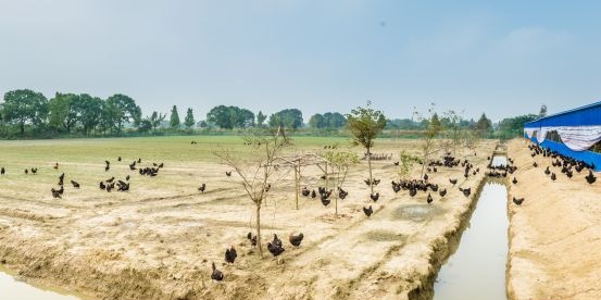 基地的畜禽们散养在田头林间,饲料都以蔬菜、青草、昆虫为主食,这些蔬菜、青草大都是农场里种植的,和有机饲料按照科学比例搭配而成,杜绝添加人工合成生长物质。无论是绿色有机肥料的施放,还是农场里的动物品类和数量的配置,都是经过严格的科学规划配置,再加上新型农业工作者的精心培育。