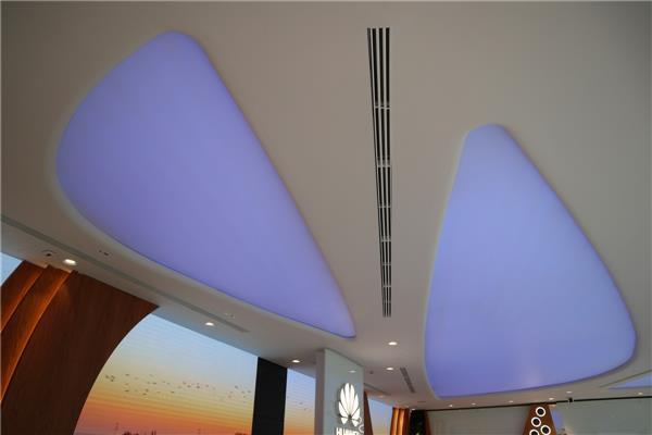 这间体验店以华为Logo的花瓣为主视觉,体验台、天花地线、异形屏幕,到订制配件、购物卡袋等等,统统采用了花瓣式样设计,甚至连店员的服装上也有华为花瓣的延伸,米兰设计之都名不虚传。