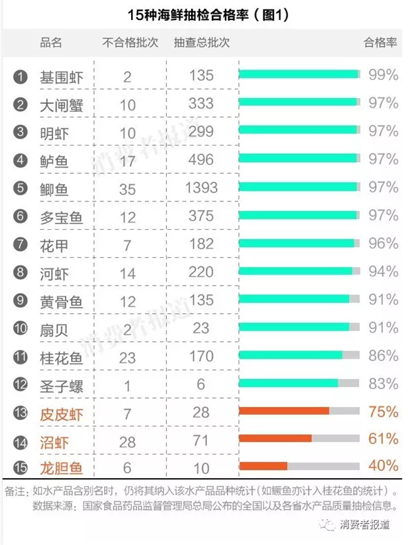 龙胆鱼、沼虾、皮皮虾合格率最低!