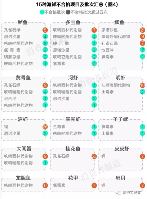 而桂花鱼、皮皮虾、龙胆鱼、花甲、扇贝检出不合格批次均集中在单个项目上,这对消费者针对性地避开某些消费盲区或具一定意义。