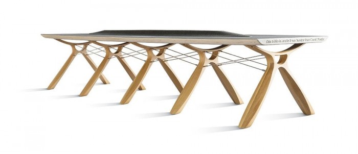 塑料鲸鱼Plastic Whale已与家具制造商Vepa和设计工作室合作制作高档办公家具,目前包括会议桌,椅子,灯具和隔音墙板。长4米,宽1.4米,高0.75米(13 x 4.6 x 2.4英尺)的桌子顶端受到鲸鱼表面启发,并沿其中心设有凸脊,并由回收PET塑料,FSC认证的桦木层和金属镀层制成。腿由FSC认证的橡木制成,中间有金属条。