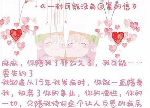 她在这封名为《一封可能没有回复的信》里说:“妈妈,你陪了我那么久,我这次可能要失约了……请你带着我那份,好好地活着。”