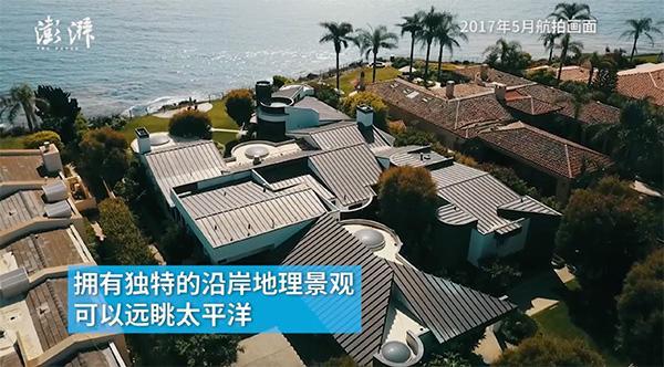 用“海景庄园”来形容它丝毫不为过。庄园内有很大的草坪,白天有个开红色卡车的园丁,他定时会打扫整理;12月的冬天,大门上已经布置好圣诞节的装饰,它还是全自动式的,车从庄园开出去时,大门便自动打开;楼房前有矮树屏风,里面有一个花园,还有私人泳池;晚上屋内有灯光,有一两个人员进出,门口地上散落着五六个未领取的快递包裹。