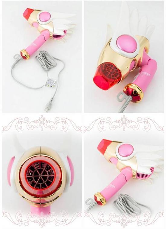 红色吹头,金色机身,加上粉嫩嫩的大眼睛和白色机翼般的机壳。这款吹风机的整体造型几乎与漫画原作《魔卡少女樱》中的封印之杖一模一样。简直是小仙女的必备神器之一!