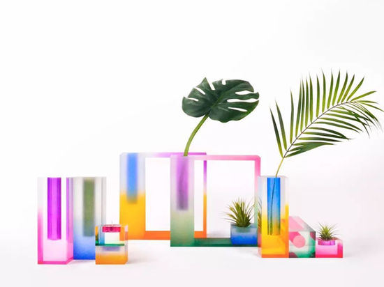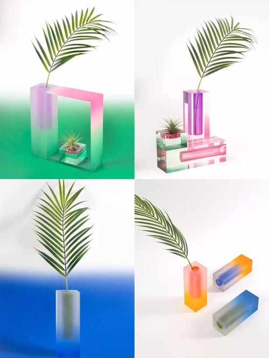这组色彩绚烂的花瓶来自韩国的设计团队 HATTERN,设计师们将光的变化运用在了花瓶中,设计灵感来源于19世纪后期的印象派,并在印象派上进行了极简主义的诠释。