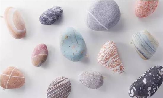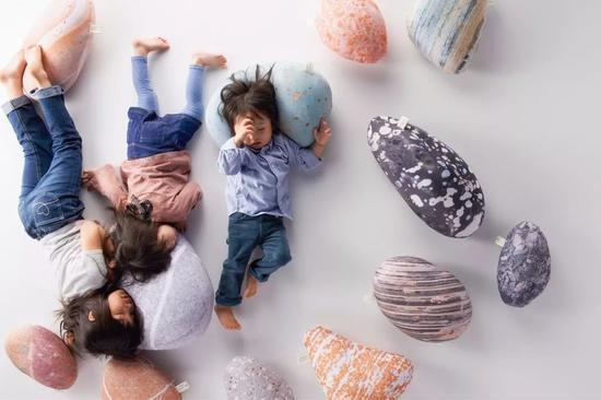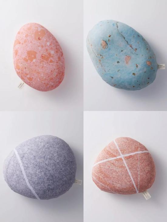 日本设计师杉山ユキ喜欢在旅行中收集当地那些纹路好看、不太常见的石头,受到这些小型藏品的启发,她创立了这个名为 Stone Cushion 的抱枕品牌。