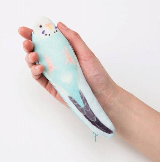 整个笔袋就是仿照长尾鹦鹉的样子来凹的造型,为了让鹦鹉笔袋看起来更逼真,设计师往里面添加了许多棉花,坚持蓬松的柔软感。如果往里添加合适的笔的数量,实际坠落的重量都可以被复制,就像真的抓了只鹦鹉在手里。