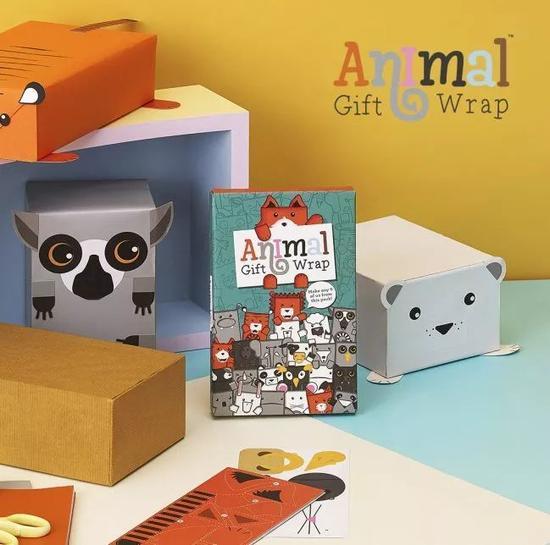 这是一款以动物包装为主题的包装盒,共有24款动物设计可供选择,材料以纸张、卡片、贴纸为主,一盒里包括6张普通包装纸,8张贴纸和5张镂空纸。