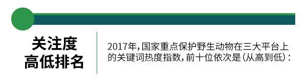 2017年,国家重点保护野生动物在三大平台上的关键词热度指数,前十位依次是(从高到低):