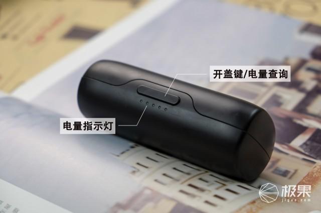收纳充电盒很小巧,单手就可以抓满,它内置了530毫安,输入5V/0.8A,输出5V/0.1A*2,蓝牙耳机的充电收纳盒电量都比较小,输入要求也都是通用5V/1A,所以对于充电器的要求都不高,市面常见的USB充电器最低也都是5V/1A了,平时使用手机充电器给它充电或者链接电脑USB口就可以。收纳盒的开盖键集成了电量查询功能,按一下就可以看见下面的电量指示灯亮起,根据亮灯多少判断剩余电量: