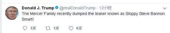 据报道,班农曾在私下里说,如果他竞选总统,默瑟家族会支持他。特朗普5日发推特说:“默瑟家族抛弃了泄密者史蒂夫⋅班农,聪明!”