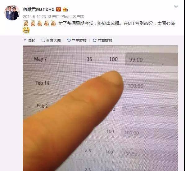 后来他选择了进入麻省理工学院就读,只花了3年的时间就完成了4年的学业。2016年3月,何猷君考进美国麻省理工学院(MIT)的金融硕士,是史上最年轻的学生,那年他才21岁。