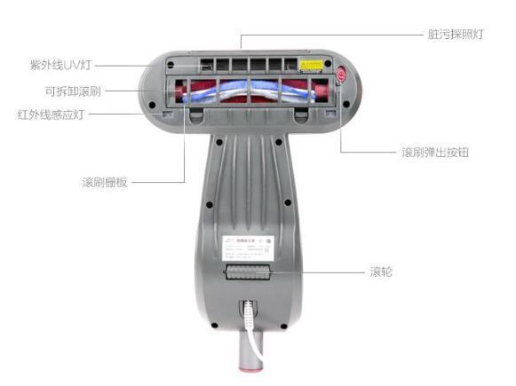 小狗电器旗下的小狗D-615除螨仪究竟拥有怎样的灭螨能力呢?秘密全部都藏在了机身的底部,可以看到底部的构造虽简洁,但“麻雀虽小,五脏俱全”,其中各种各样的关于杀菌、安全的细节,让人无不为之惊叹。从图中可以看到,它的吸附部位由脏污探照灯、紫外线UV灯、可拆卸软绒滚刷、防紫外线泄露感应器等部件组成。