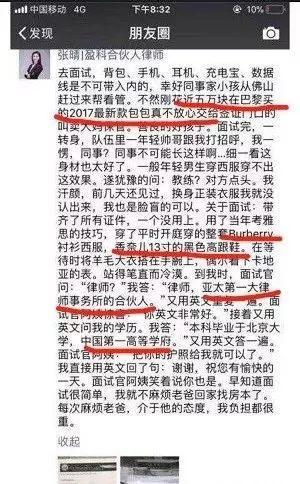 最开始流传的,是下面这张截图:张晴,本科毕业于北京大学,是盈科律师事务所的合伙人,爱买奢侈品,讲究生活品质。