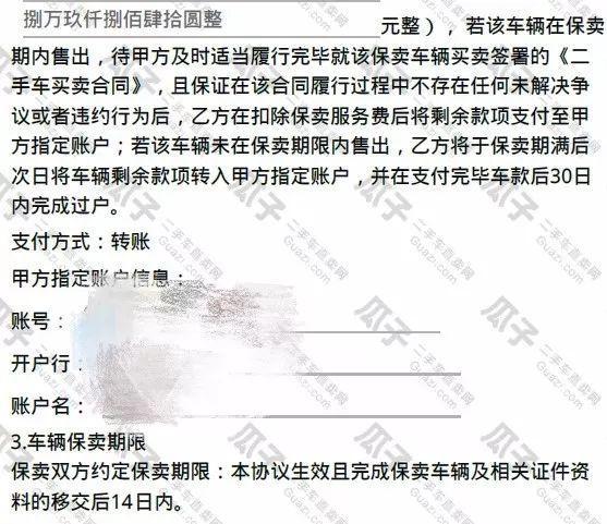 保卖车服务是指瓜子二手车以约定好的价格,先付给卖车用户80%车款,并将车放到瓜子二手车的销售场地,承诺14天保证卖出的卖车形式,剩余的20%车款也在14天内结清。