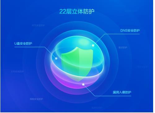 在新增“漏洞入侵防护”及“DNS防护”两层入口防护后,如今,360安全卫士已经打造集7层系统防护+7层入口防护+7层浏览器防护+1层隔离防护于一体的22层立体防护体系。