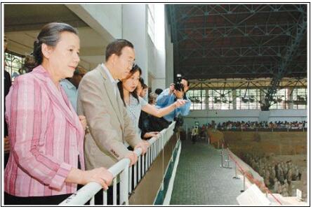 2009年7月25日,联合国秘书长潘基文访问西安,在秦始皇兵马俑博物馆用中文留言:“人间奇迹,举世无双。”