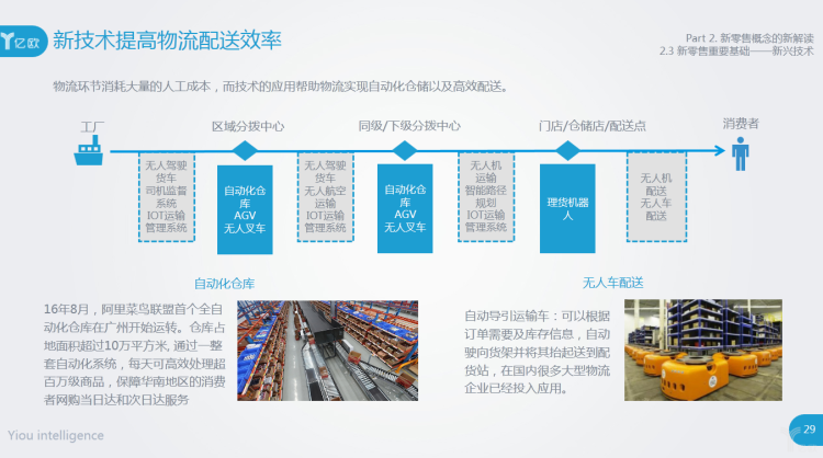 基于新技术,我们才可以感受到电商界面的推送更加精准、快递的配送速度越来越快、商场的导购机器人使购物更有趣。