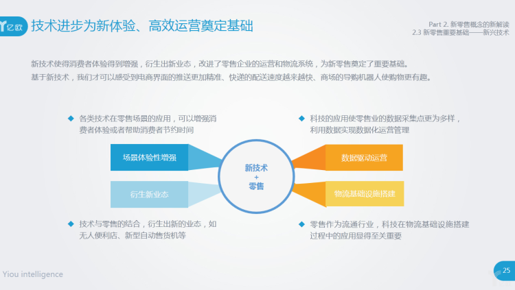 新技术使得消费者体验得到增强,衍生出新业态,改进了零售企业的运营和物流系统,为新零售奠定了重要基础。