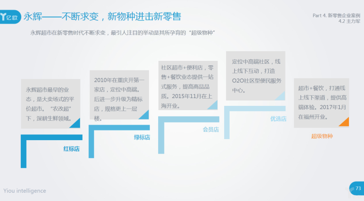 永辉——不断求变,新物种进击新零售。永辉超市在新零售时代不断求变,最引人注目的举动是其所孕育的“超级物种”。永辉还通过源头直采,自建物流,加强供应链。