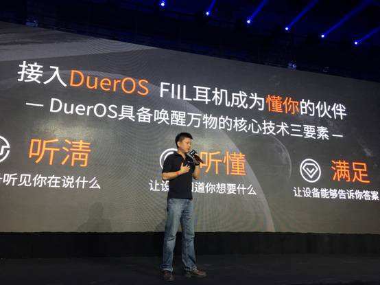2017年9月,FIIL推出搭载百度DuerOS对话式人工智能系统的智能无线耳机,开启全新智能音乐模式。这次合作,使FIIL耳机不仅能“听到”用户的说话,更能“听懂”用户的需求,实现语音助手,语音搜歌等功能,真正做到解放双手。用户还可以通过这套系统询问一些常识性问题,比如“今天的天气怎么样?”、“涮羊肉起源于哪个朝代?”等,有点类似手机上智能助手。DuerOS的赋能让FIIL智能耳机的功能更加多样化,服务更加智能化,为智能耳机市场开拓出了更大的空间。