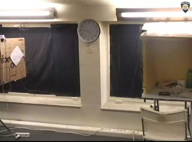 克内政部提供的行动当晚的视频显示,全副武装的特警在夜色中砸破门窗进入室内,勒令几名嫌犯双手抱头蹲下。视频可见几个用纸箱和海绵做成的“话务间”,其中有文稿、手机、平板电脑,一个纸箱内壁写着“招财进宝”并画有一个元宝……