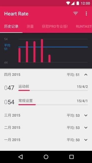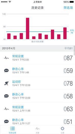 Runtastic Heart Rate的用途和Instant Heart Rate相似,也是通过闪光灯来测心率。而Runtastic Heart Rate还提供了不同类型的测试基准,比如说运动、休息等,这样一来能够更准确反映用户的心率是否正常。