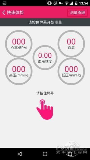 例如借助“体检宝”这款App,就可以利用手机闪光灯来测量心率、血氧、血压以及血液粘度等项目。在测量的时候,App也要求将手指放置在摄像头上,然后App则会开启闪光灯,让摄像头录入手指头的血液图像。