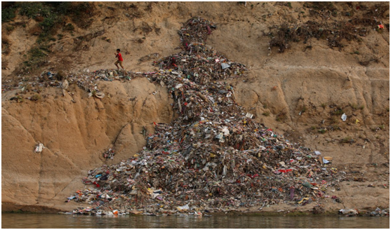 恒河不仅仅有污水,成堆垃圾也直接倒入河中,特别在政府没有定期收集垃圾的城区,这一问题尤为严重。