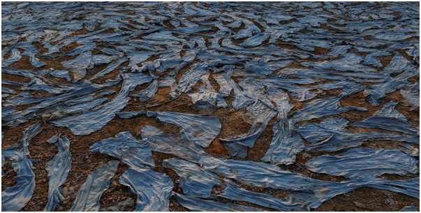 在坎普尔,使用强力化学物质的印染皮革在恒河两岸烘干。