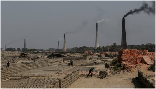 在加尔各答,砖窑用河里的陶土和沉积物制造砖头,烟囱排放着有害气体,砖窑的出现加剧恒河水质量问题。