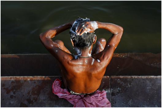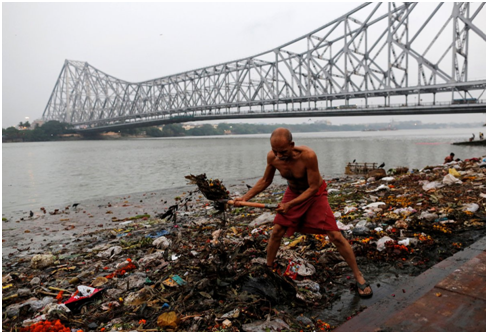 发源于喜马拉雅山的恒河水质清澈,流经城市和工业中心过后,原本清澈的河流因过度用水和污染变成有害的淤泥。