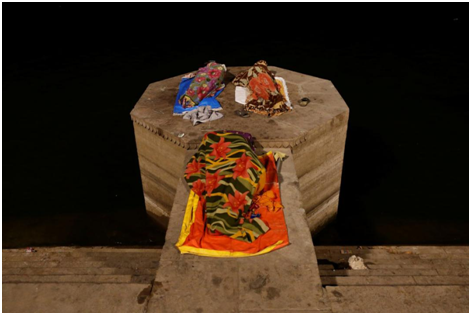 印度精神之都瓦纳拉西,虔诚的印度教教徒将逝人遗体火化前,浸泡在圣河当中。