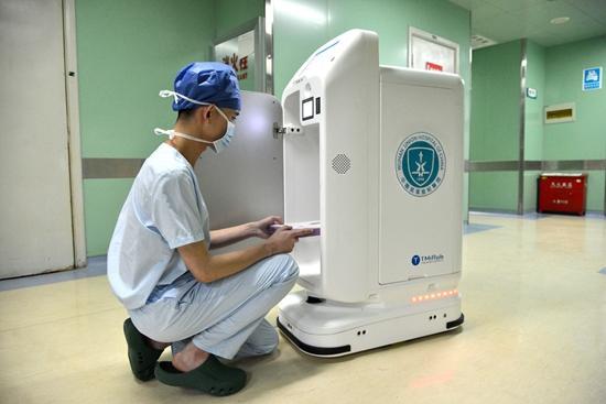 一台达芬奇手术机器人,3年前在武汉协和医院上岗。医生坐在操作台中,通过极其精细的机械臂,让手术器械尖端与双手同步。它为每台手术节省了至少两名医护人员。在上海交通大学医学院附属仁济医院,机器人走进了被隔离的核医学科病房,它能为接受了放射性疗法的患者量体温、测血压,询问病情。