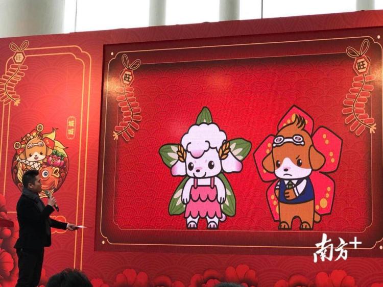 花花和城城,是两只小狗,它们两个还是我们广州花市的花神,吉祥物主要是基于花城的概念来策划。