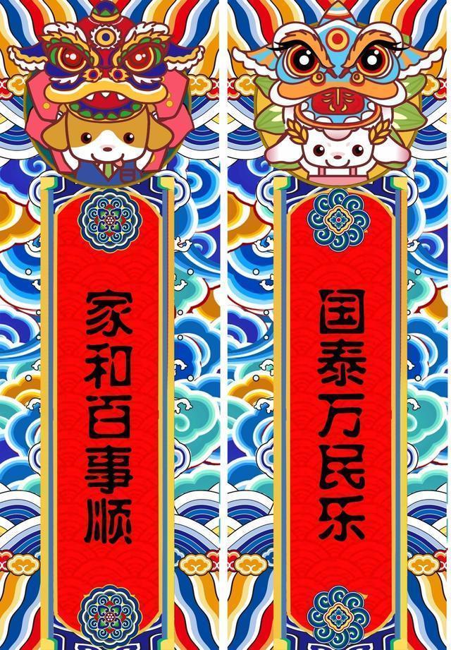 更贴心的是:设计者还结合新春的欢乐气氛与节日需求,专门为这两只花市吉祥物设计了门神、对联、微信表情包等相关配套产品。让它们能时刻了解您的需求,春节期间成为您能随时随地服务的贴身又贴心萌宠。