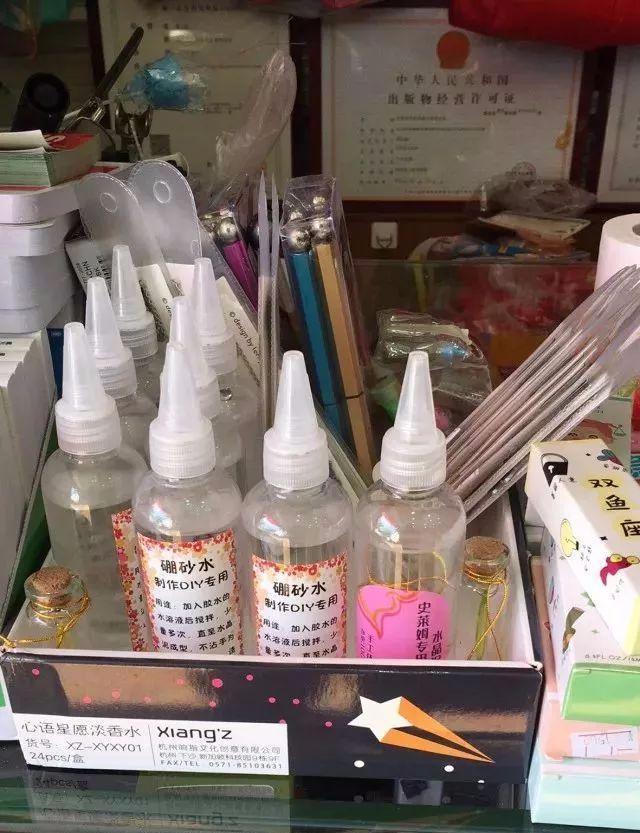 在另一家小卖部,记者发现同样出售“史莱姆水晶泥”制作材料。当记者质疑硼砂水有毒性时,店主告诉记者,配料里同样有硼砂水。