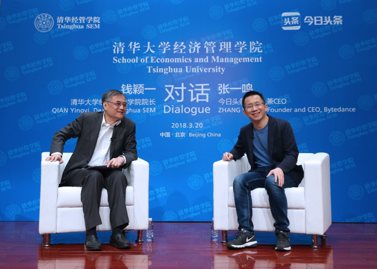 3月20日晚上,清华经管学院伟伦楼,清华经管学院院长钱颖一教授对话今日头条创始人兼CEO张一鸣。张一鸣谈到今日头条2018年最重要的三件事,是企业社会责任、业务和全球化。他认为,科技平台型企业,大到一定程度,就有了社会公共基础设施的属性,“这时,对平台的要求,就不仅仅是商业公司的法律责任,而是更高了。”