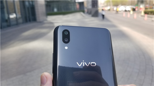 背后的设计比较简洁,光滑的玻璃机身上仅有vivo的logo,双摄像头采用了目前流行的竖排设计,稍微有些突出。闪光灯在摄像头下方。
