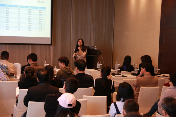颁奖结束后,YESSAT优秀学员商筱陶(Teresa)(St James School 2018 秋季入学学生(2018年秋季该校仅从中国招收4名学生),该学校在寄宿高中内排名34,近两年的学生毕业后多数升入哈佛大学、芝加哥大学、明德学院、威廉姆斯学院等)为我们分享了她的成功经验。