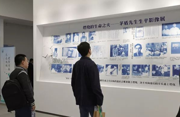 现场观众参观茅盾先生生平影像展