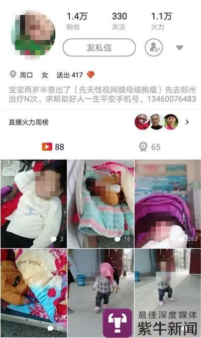 2017年下半年,河南太康县的3岁女童雅雅患上重症,经医院检查,被确诊为眼母细胞瘤。孩子的家在农村,家中共有5个孩子,雅雅是老四,由于家庭条件不好,雅雅父母开始在水滴筹平台发起众筹,同时在火山视频发起直播,筹集孩子的治疗资金。