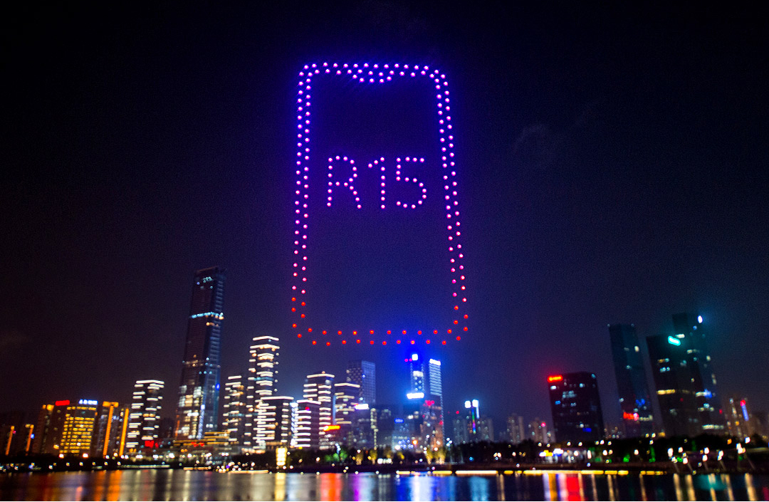 我和其他小妹们还有一个目标,就是要打造成为成熟的“低干扰空域造景媒体”。这也是我家族的杰出代表亿航白鹭在全世界首创的概念,是什么意思呢?就是以无人机为星,以夜空为幕,打造一块超低干扰的空中屏幕,将想要传达的信息用创新的科技形式展示出来。不但高颜值,而且还能按照人的意愿来造景,超越了现有的传统媒体与表现形式。前不久为某品牌手机上市造势,我们就在空中造出了一只巨大的手机。