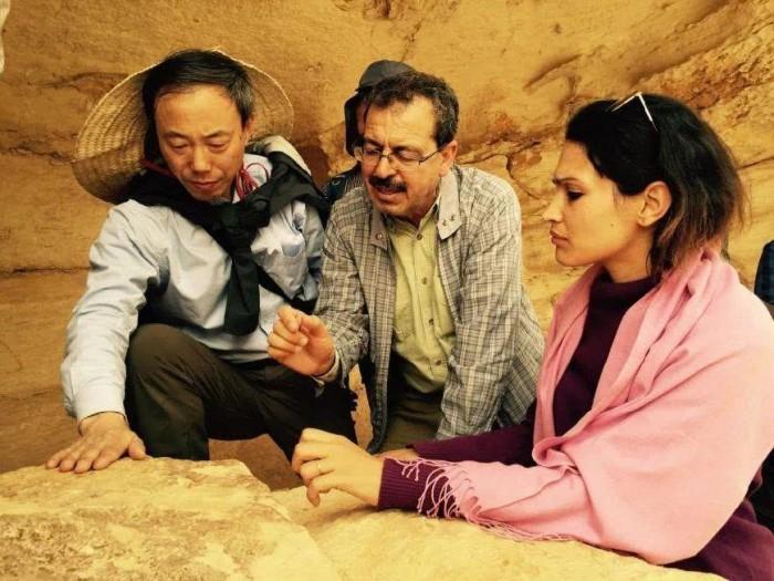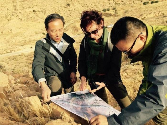 王心源研究员与意大利考古专家实地验证边墙遗址(图片来源:中国科学院遥感与数字地球研究所)